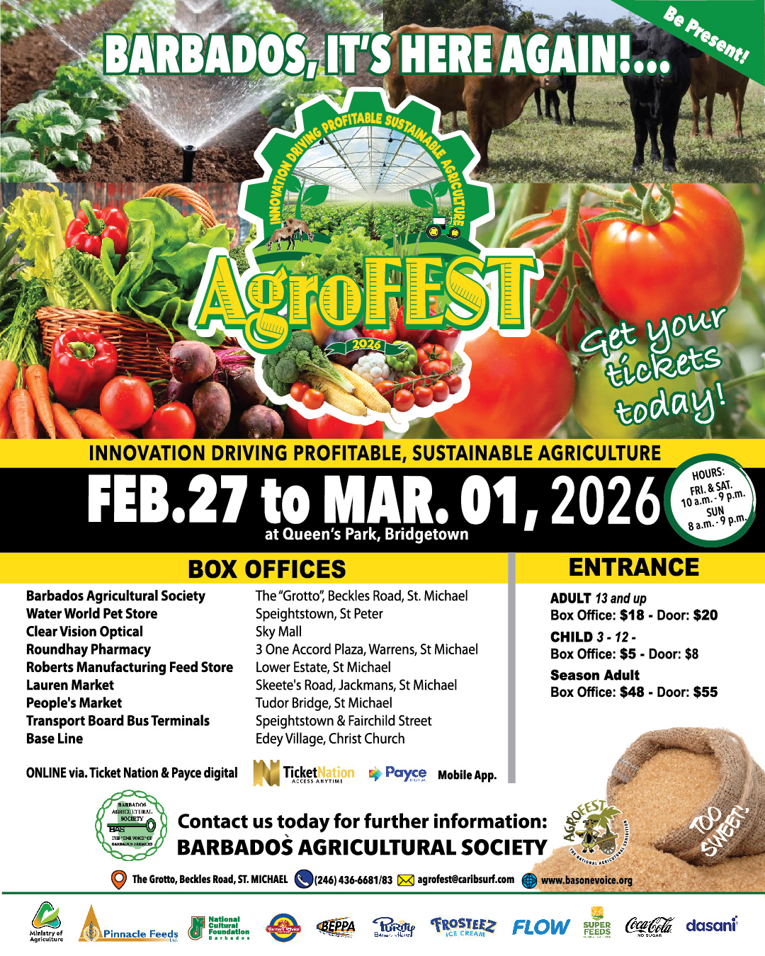 Agrofest is our National Agricultural Exhibition which takes place annually at Queen’s Park near Bridgetown.