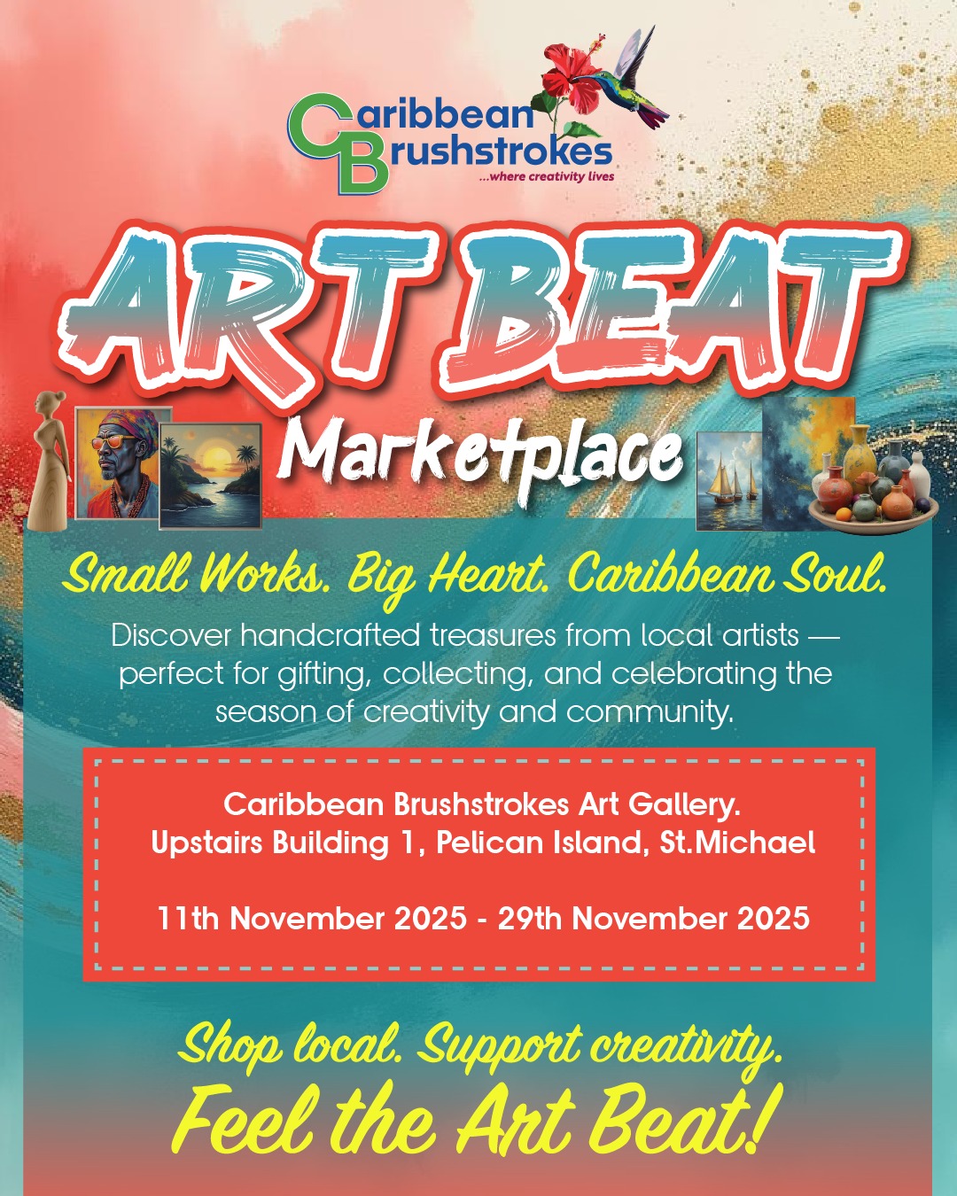 Feel the rhythm of creativity at Caribbean Brushstrokes with the Art Beat Marketplace — a vibrant celebration of small works with big heart and pure Caribbean soul. Explore handcrafted pieces perfect for gifting, collecting, or simply connecting with local artistry.