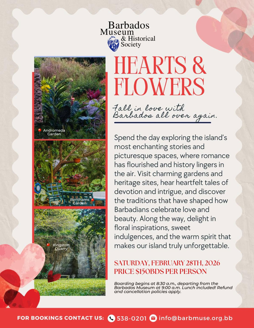 Join the Barbados Museum & Historical Society on their February Bus Tour entitled "Hearts & Flowers".