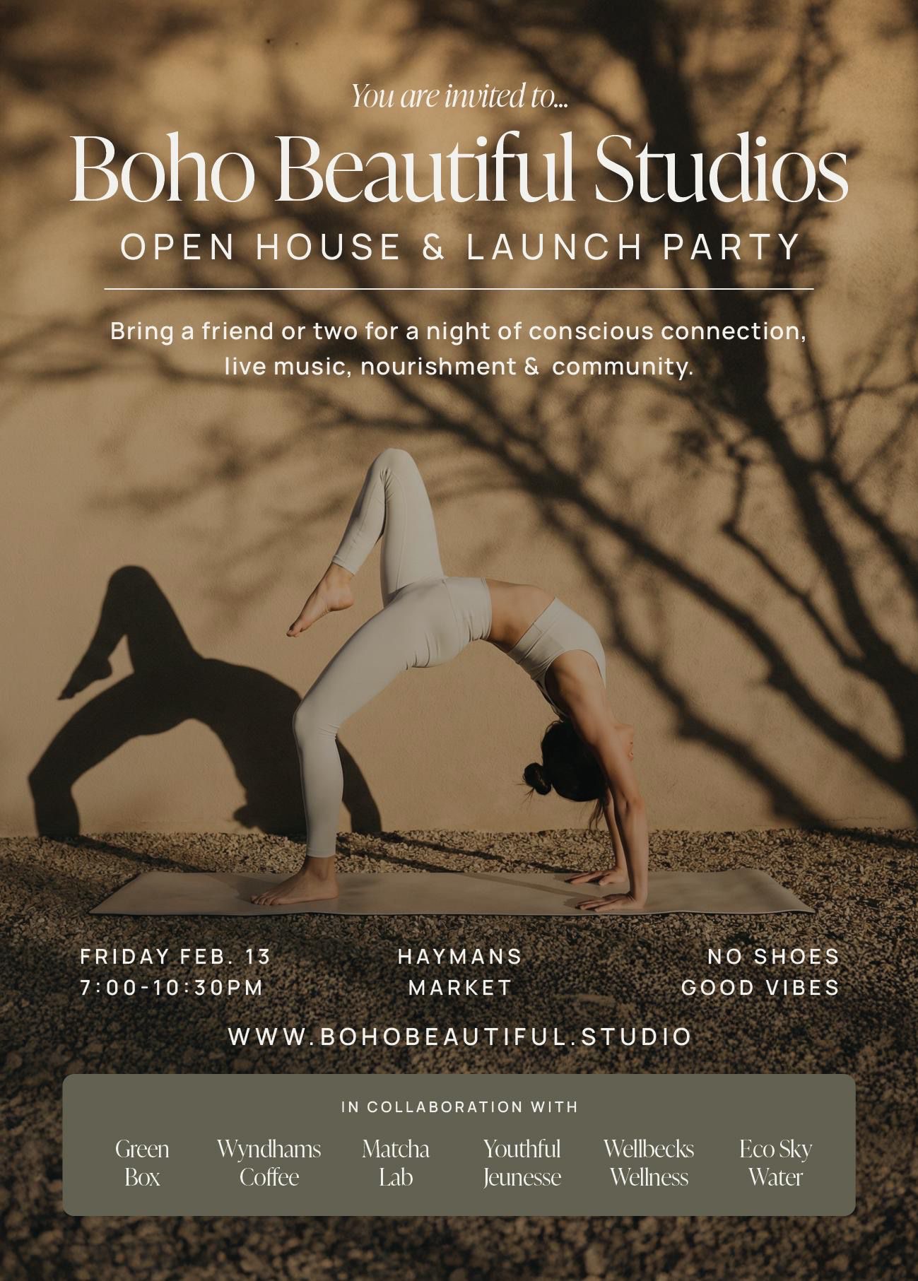 You're invited to BOHO Beautiful Studios Open House & Launch Party.