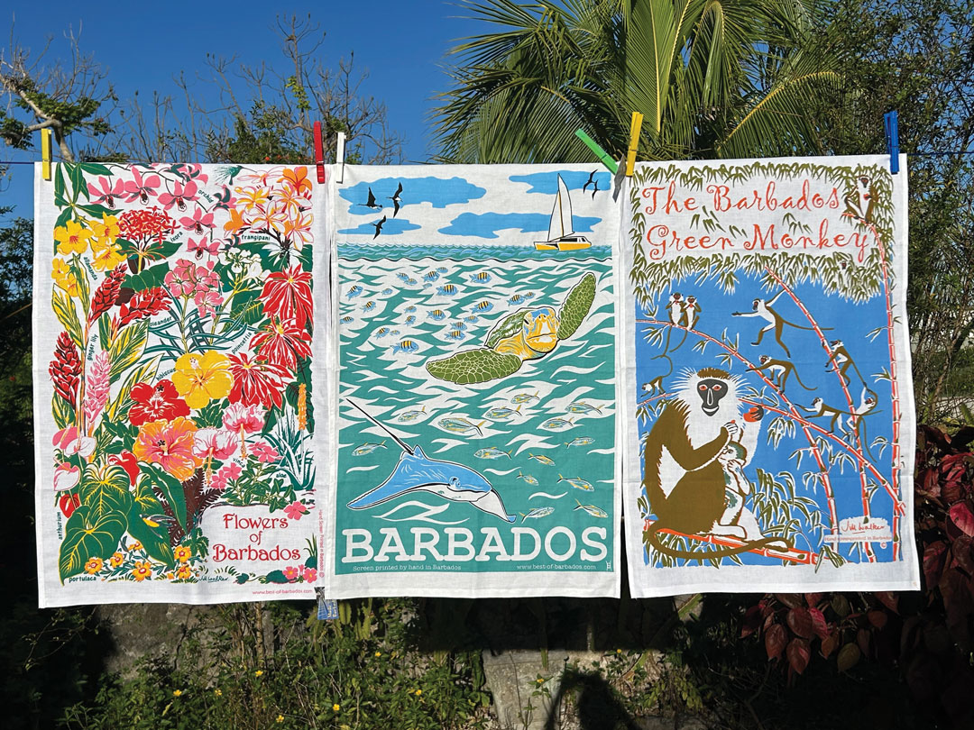 The shops also feature hand screenprinted tea towels and t-shirts designed by Jill Walker and Olivia Pile, offering unique, beautifully crafted pieces that capture the spirit of Barbados.